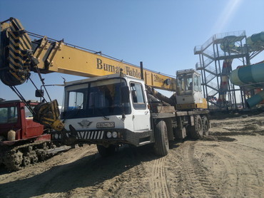 Основная стрела 50,4 метров + управляемый удлинитель 14 метров. Полный привод, крабовый ход.