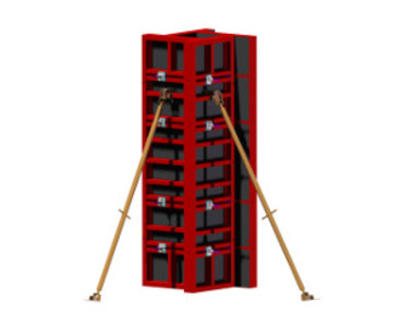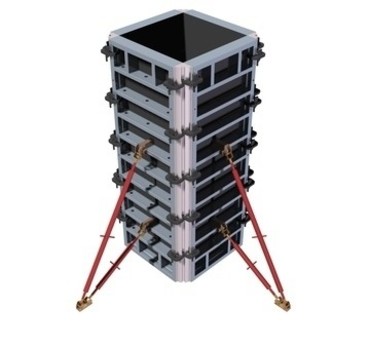 Такой вид конструкции применяется при работе с прямоугольным сечением и подходит для использования только в том случае, если его размер соответствует размеру линейных щитов опалубки. Такая опалубка колонн не позволяет менять размер сечения.